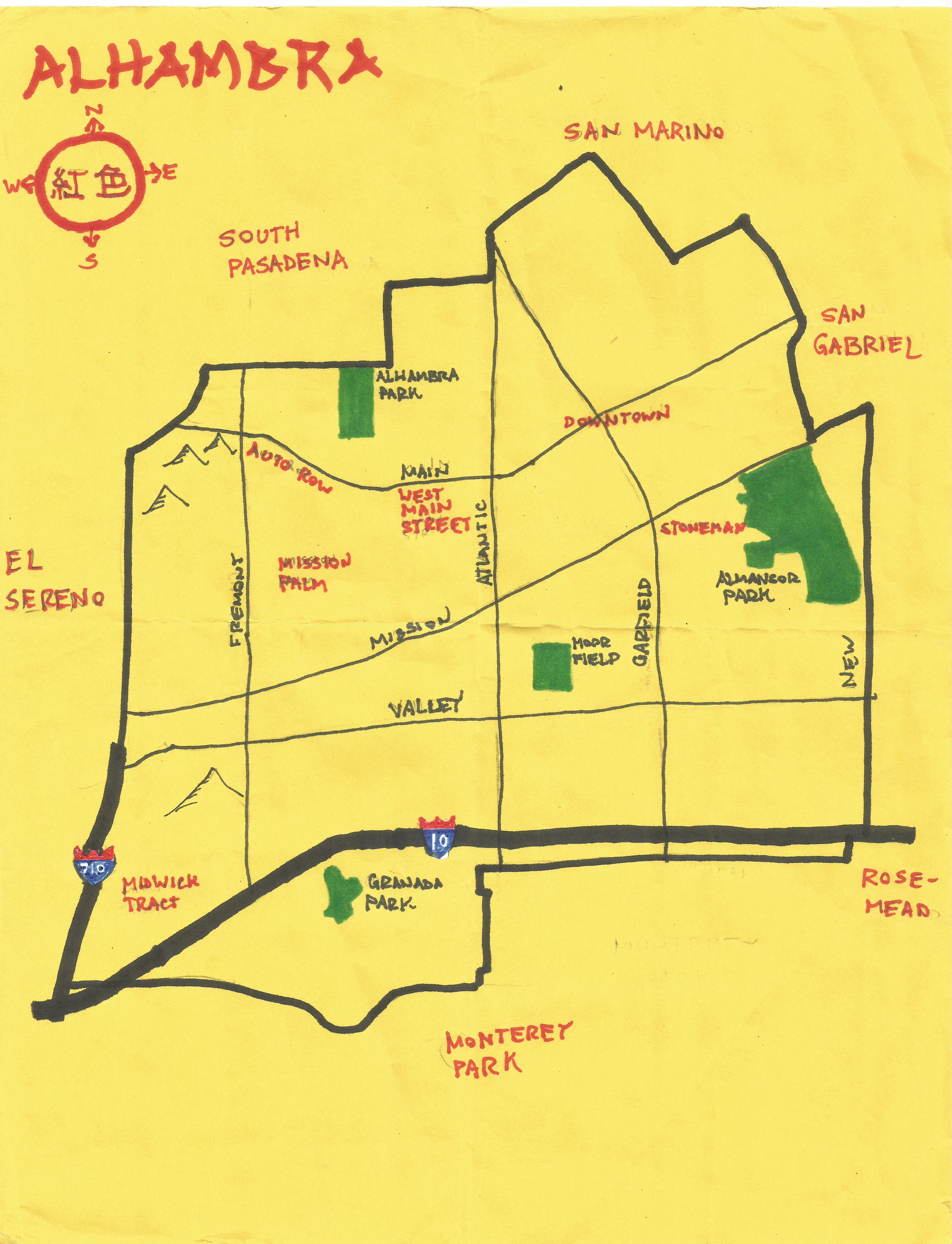 Alhambra is on the western edge of the San Gabriel Valley between posh San Marino, trendy South Pasadena, historic San Gabriel, blue-collar Rosemead, and the most Chinese city in the US, Monterey Park.