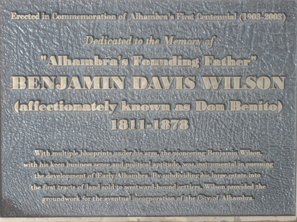 This statue marks the spot where, on weekends, a lot of people come to hang out, break dance and eat. Benjamin Wilson was a fur trader who was trying to go to China. When he moved to the San Gabriel Valley (then part of Mexico) he was denied passage. He ended up becoming a Mexican citizen and bought considerable tracts of land in the area. Supposedly due to his kindness to the Tongva they nicknamed him “Don Benito” (at least to his face).
