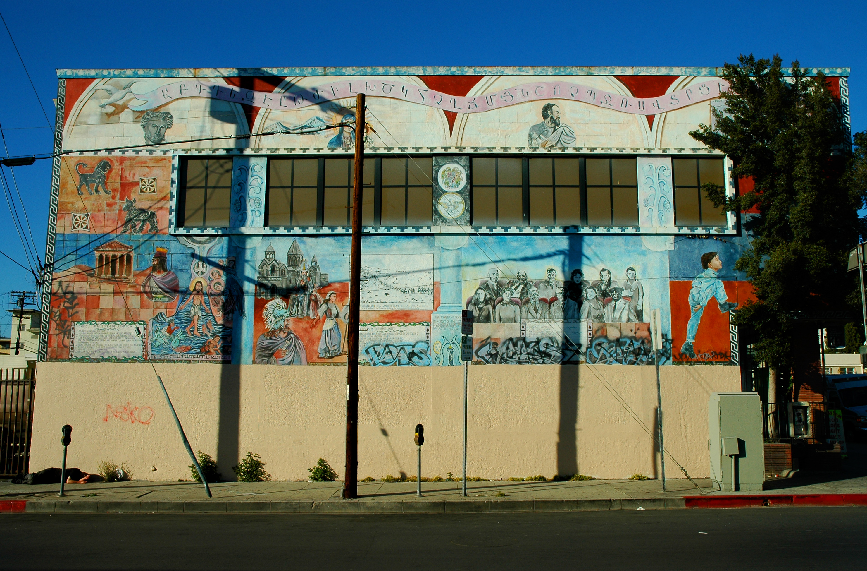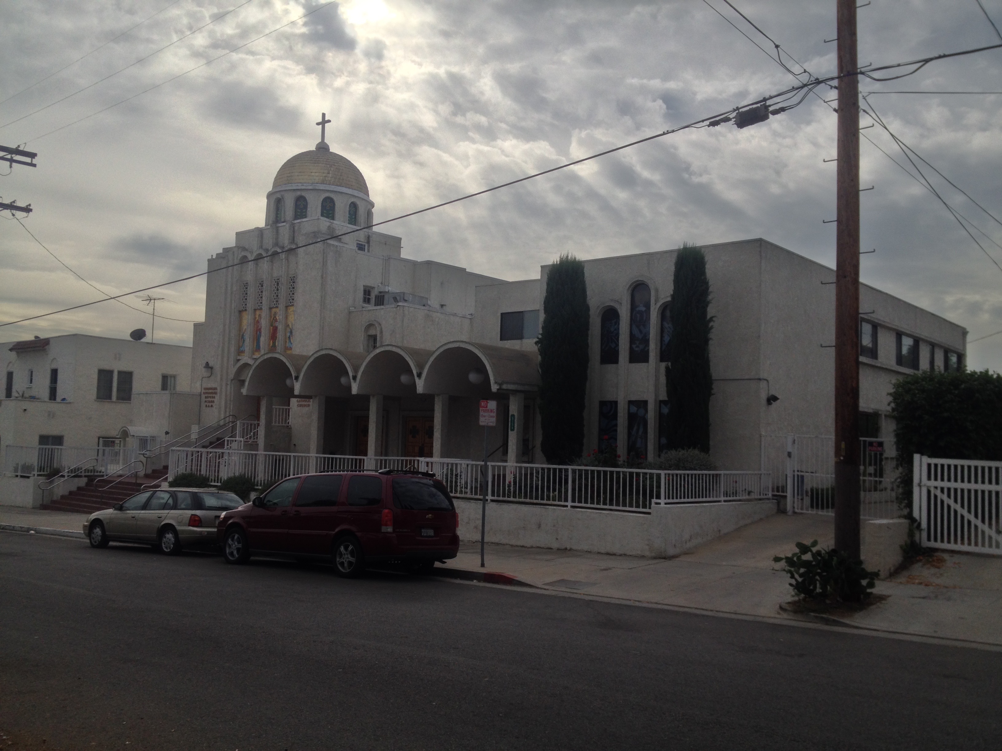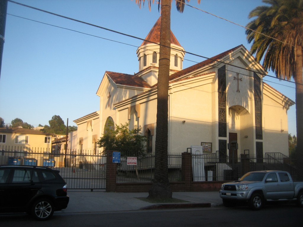 Aside from the storefronts, which often have signs written in Armenian, Little Armenia has few physical aspects that reflect its Armenian character. Physically, like most of the Hollywood lowlands, it’s actually a fairly ugly neighborhood, dominated by drab apartment buildings, small homes with concrete lawns, and indistinguishable strip malls. There is, however, a mural depicting Armenian history on the south face of the building at 1203 E Vermont Ave (update: it’s been painted over) and several art deco buildings, and a couple of attractive churches, including St. Garabed Church (an Armenian Apostolic Orthodox Church) and Nativity of the Blessed Virgin Mary Ukrainian Catholic Church.