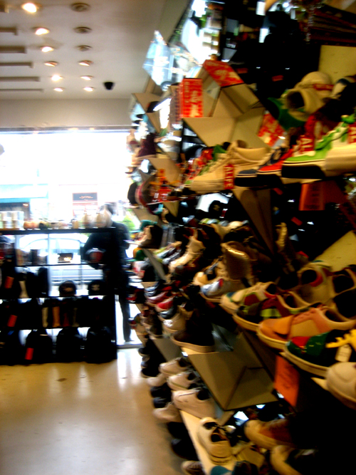 There are a lot of clothing joints in the neighborhood. As with the world outside of Milan, there are many more options for the ladies than the gents. And for the gents, most of the choices are kawaii T-shirts and outfits you’d see on kids in a jerk video.