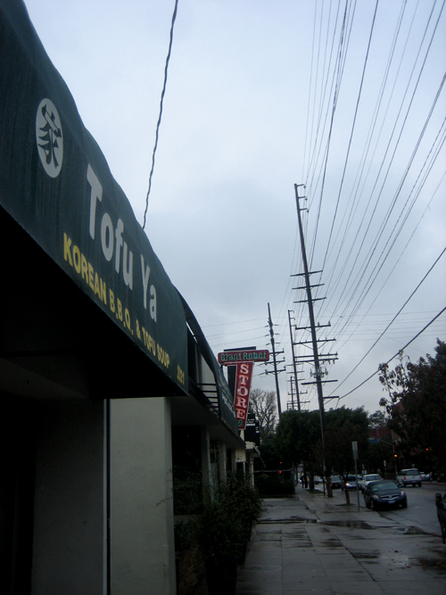 The latter is a small district along Sawtelle Boulevard between Nebraska and Tennessee in the Sawtelle neighborhood (and former municipality) favored by Nisei, foodies, otaku, hentai, and nipponophiles. With the rainy season just beginning, my ex-roomie Shimbles and I set out to explore the neighborhood.