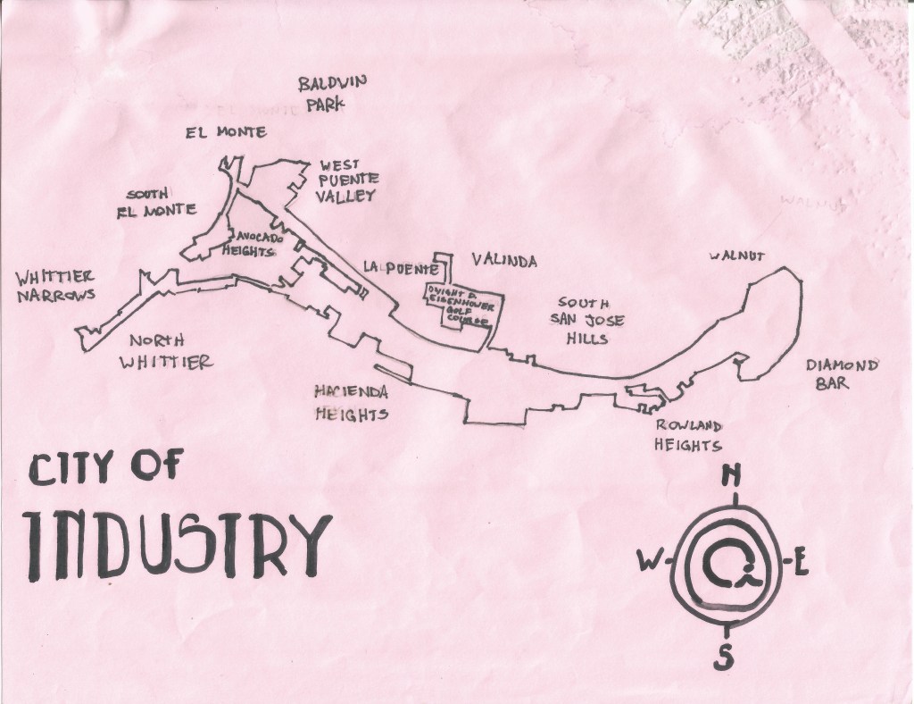 Industry is a strangely shaped “city” in the south end of the San Gabriel Valley surrounded by the communities of Whittier Narrows, South El Monte, El Monte, Baldwin Park, West Puente Valley, La Puente, Valinda, South San Jose Hills, Walnut, Diamond Bar, Rowland Heights, Hacienda Heights and North Whittier. It almost completely surrounds Avocado Heights.