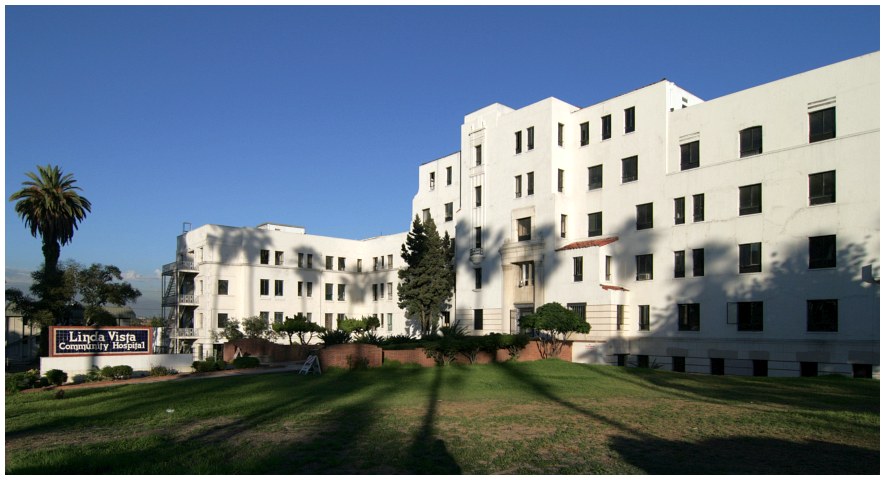 Linda Vista Hospital is a former hospital in Boyle Heights. Originally the Santa Fe Railroad Hospital, the hospital was constructed for railroad employees in 1938. It ceased operation as a medical facility in 1990. Since that time, it has been used primarily as a filming location, including scenes in Outbreak, End of Days, Pearl Harbor, and the pilot for ER. The hospital was placed on the National Register of Historic Places in January 2006. Now it’s being redeveloped as a residence.