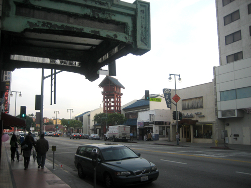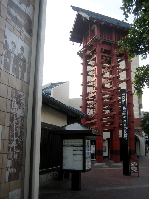 With the presence of more Koreans in the neighborhood has come an increasingly Korean character. On a leisurely stroll through Little Tokyo, one encounters large numbers of Koreans and passes numerous Korean businesses such as Zip Fusion, Han’s Bibimbap, Keunsub Yun, Ko Hang Kim Bob, Korean Kitchen, Hankook Barbecue, Ock Sul Sun Sik USA Corporation, Park Je Myeong, Pinkberry, Sohoju, and Tofu Village. While their presence may be bemoaned by a segment of authenticity-obsessed Nipponophiles and cultural watchdogs (presumably ones who don’t live in the neighborhood), Koreans actually have significant ties to the neighborhood that stretch back decades and, following a decrease in overseas investments from Japan, the Koreans have done more than anyone else to invigorate the neighborhood. Even the Japanese Village Fire Tower and Plaza, the symbol for many of modern Little Tokyo, were designed not by a Japanese-American but rather by Korean-American architect David Hyun.