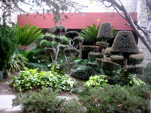 Befitting a Japanese neighborhood, there are at least two lovely public Japanese gardens in the neighborhood — the James Irvine Japanese Garden (Seiryu-en) and the rooftop garden in the Kyoto Grand Hotel and Gardens (Gan iwashire) (formerly the New Otani). In addition, there are many impressive private gardens within the neighborhood that one can stare at appreciatively through fences.
