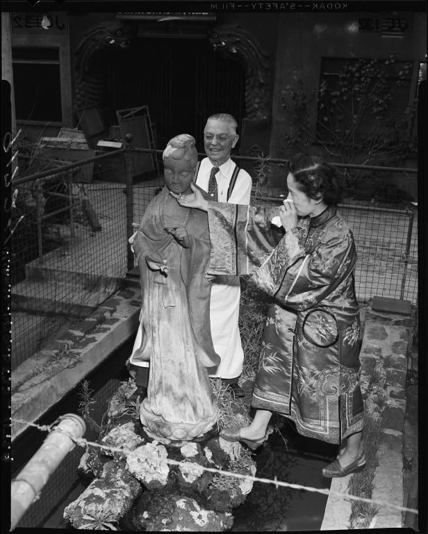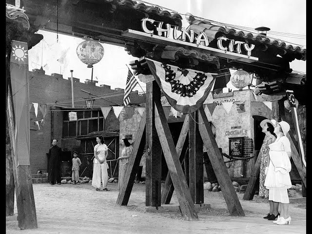 The neighborhood, opened with considerable pomp and circumstance and included appearances from Governor Frank Merriam and Anna May Wong. Among the many kitschy touches was China City, a section of the neighborhood hemmed in by a “great wall,” within which visitors were ferried by rickshaw through the “Passage of 100 Surprises.” They also enjoyed “Chinaburgers” at the Court of Confucius as well as guide girls wearing cheongsam.