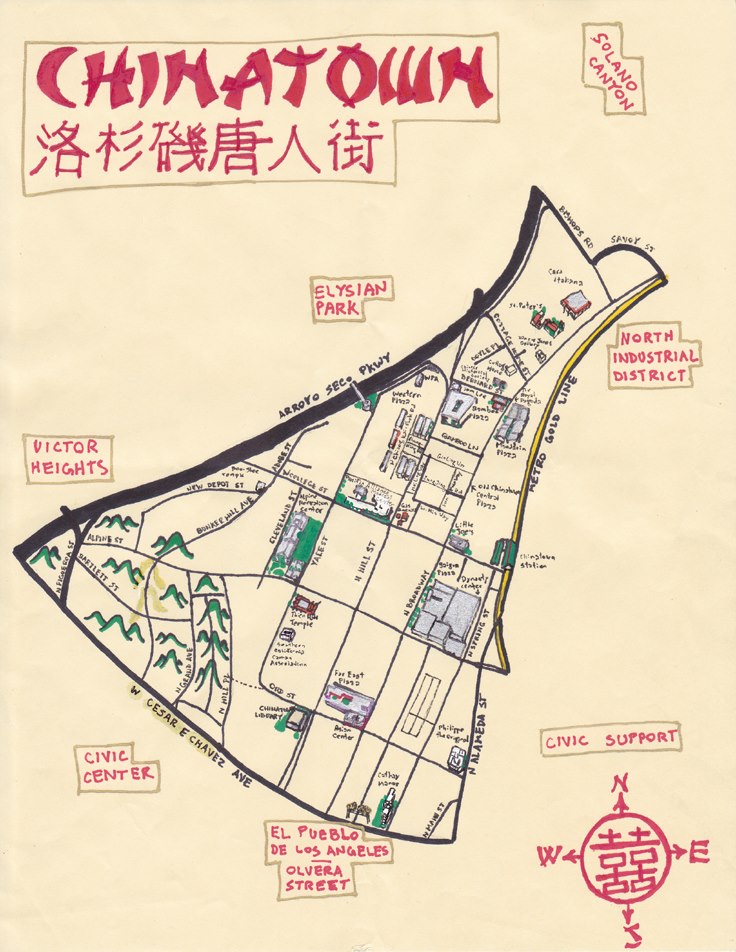 Chinatown is bordered by the neighborhoods of Victor HeightsElysian Park and Solano Canyon to the northwest, Angeleno Heights to the west, Dogtown to the northeast, the Civic Support area to the east, and Civic Center and Temple-Beaudry on the south.