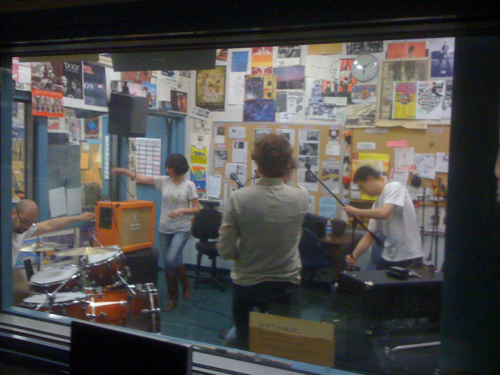 There’s also the radio station KSPC (88.7), which I can sometimes hear thirty or so miles away. Frank Zappa and the Dust Brothers both had shows there at one time, as did DJ Superstar. When Paul and I popped in, we ran into Steven Hertz, host of the Videogame Music Show. We crashed the studio to find Happy Hollows setting up for a live performance to precede their gig at No-Chella.
