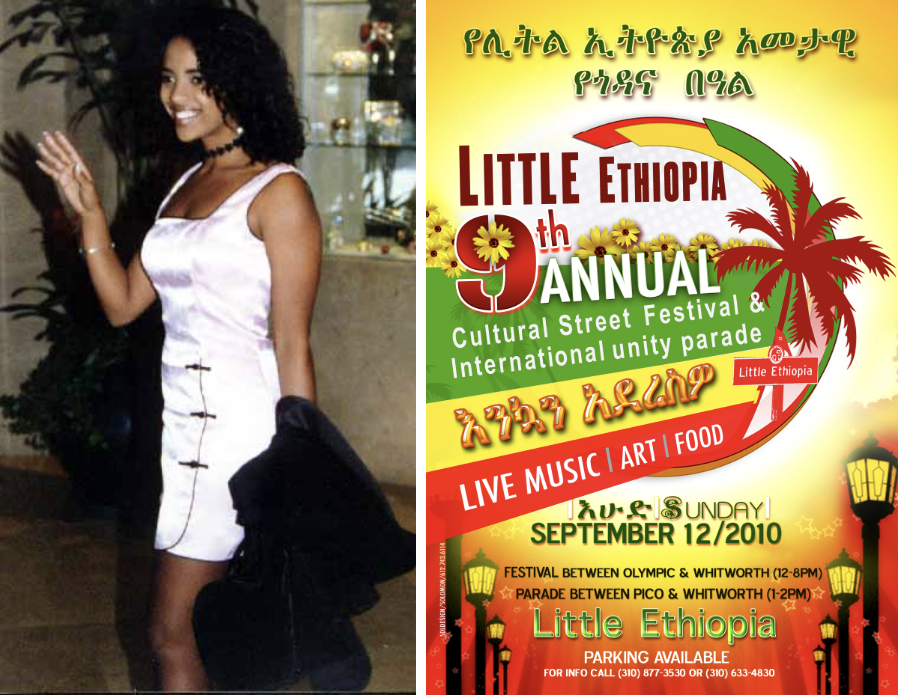 Senait Ashenafi and an advertisement for the 9th Annual Little Ethiopia Cultural Street Festival