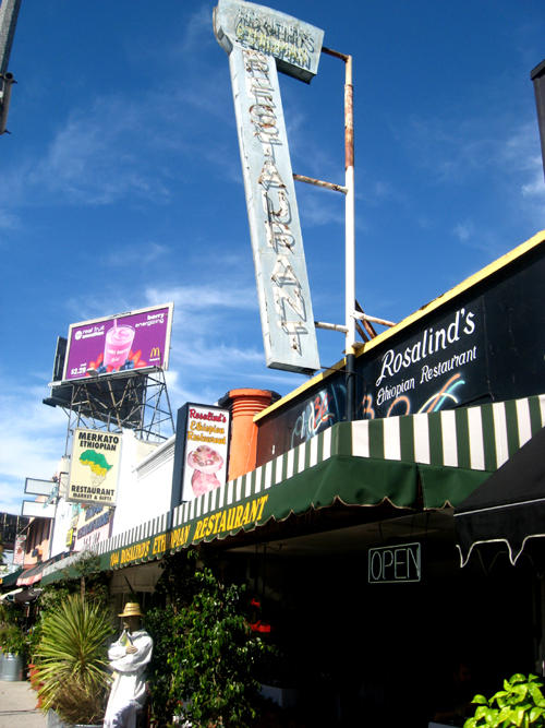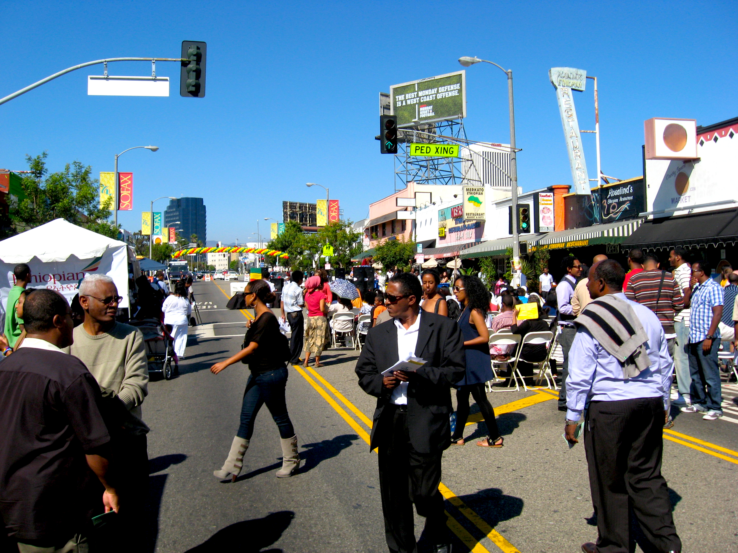 The Ethiopian character extends beyond the official designation to Addis Art Gallery, Awash Restaurant, Alula House of Juice, and Selam Market & Deli on Pico; Fassica Restaurant on Washington; Ibex Restaurant on La Brea; and Yemi Spa on Beverly.