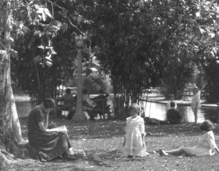 The day after Sycamore Grove became part of Los Angeles, the “sporting club” there was razed and the land became a park. Sycamore Grove Park was dedicated in 1905. By 1910, it was a popular filming location. In 1922, Hiner began conducting bands at the Sousa-Hiner Bandshell. Each of the yearly “state picnics” held there was dedicated to a state back east where Highland Park residents had immigrated from. The heyday of the park was in the 1920s and ’30s. They had Sycamore Grove Days and the annual celebration of the Wigwam Club. There was also a pond and stream fed by the Arroyo Seco that was covered in the 1930s as flood control.