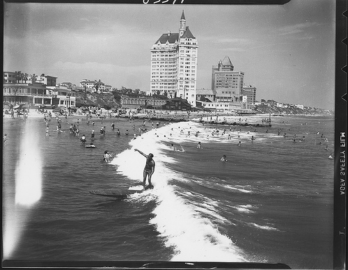 Although California’s surfing scene is said to have gotten its start in Long Beach in 1911, after two surfers returned from Hawaii, Long Beach hosted the first National Surfing and Paddleboard Championships in 1938. Surfing doesn’t really happen anymore because the breakwater built in 1949 keeps the waters pretty calm, although there are efforts to remove it.