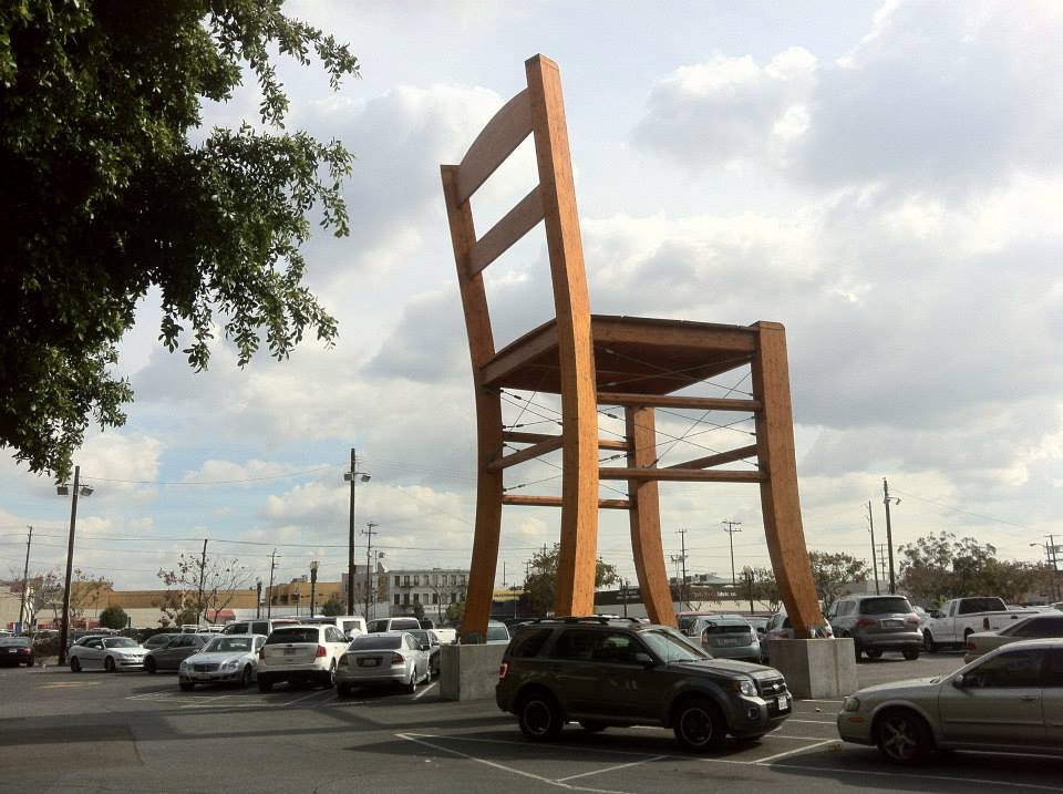 Heading toward Silver Lake along Sunset Boulevard, one passes through “The Cut,” a sandstone hill carved out in the 1880s by the Ostrich Farm Railway to bring visitors from downtown to the ostrich farm in Griffith Park. Ostrich farms were apparently quite popular back then; Lincoln Heights and South Pasadena also had them. Now the hill is more recognized for the murals painted by a Guatemalteco artist who goes by “Cache,” whose favorite birds are apparently ostriches’ distant flightless relatives: chickens.