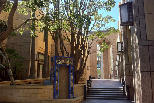 Upon disembarking from the Cal State LA station, I saw the Metrolink‘s San Bernardino Line train, which runs parallel to the Silver Line for much of the way, eventually taking passengers as far as the Inland Empire. After climbing a flight of stairs, the pedestrian bridge heads north toward the campus in the University Hills section of El Sereno. Just west, the Campus Road bridge heads south to the City Terrace section of East Los Angeles. I have no doubt there are more attractions in that residential neighborhood than just St. Lucy’s Catholic Church, the library, a Burger King, and a Chevron, but I decided to continue north to explore the campus, partly because I wanted to stop by the sixteen-foot high bronze statue of Confucius (孔子), since it was the day on which his birthday is observed in Vietnam.
