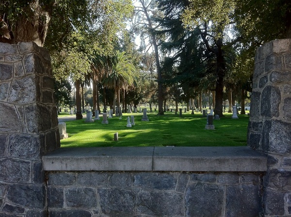 A few blocks north, Monrovia also has its own “Restaurant Row,” although it’s heavier on chains than the one in Arcadia. A bit further north from that is Monrovia’s quaint Old Town, which for much of the year hosts the well-attended Family Festivals on Fridays. Just east of the future station’s site is Live Oak Memorial Park, a cemetery established in 1887. Across the street from the graveyard, the train tracks turn due east, running parallel to Duarte Road, which we walked along.