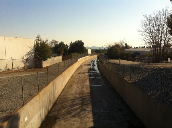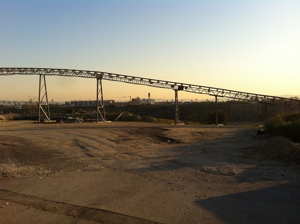 We passed by the wide San Gabriel River flood plain (although we saw no water flowing in the heavily-dammed river) and arrived in Irwindale. Since the 1950s, gravel quarries have been the major revenue source for the city (which is also sometimes called “Jardin de Roca“). Although some of the quarries are now closed or have been turned into landfills, the area has the bleak, scarred appearance of Mordor. The fantasy vibe seems appropriate because the nearby Santa Fe Recreation Area hosts the Original Renaissance Pleasure Faire (which, like all Renaissance festivals, more resembles a Fantasy England like Middle Earth than it does 14th Century Italy).