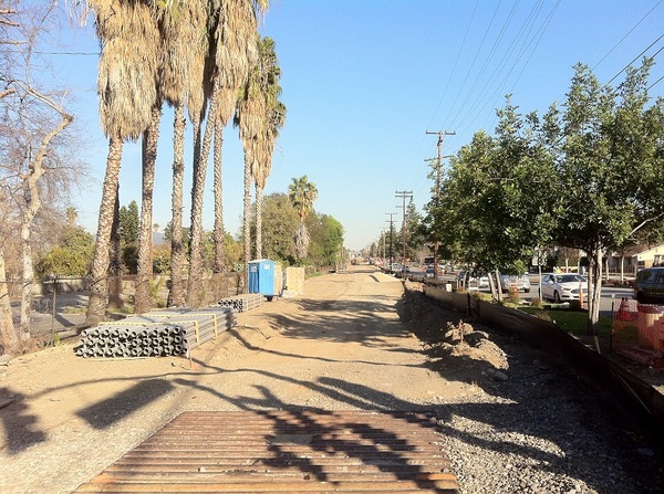 Not long after we crossed Sawpit Wash we entered Duarte. After briefly stopping at quiet Aloysia Moore Park we continued east until construction prevented us from getting any closer to the site of Duarte Station. So we again detoured north.