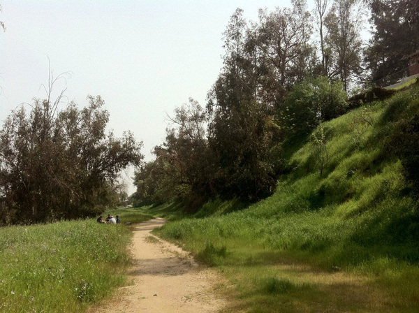 Silver Lake Court ends behind Rose Scharlin Cooperative Nursery School, but the old Red Car path continues on through a small, sun-dappled woodland known locally as Red Car Canyon. After a short, rather shady stretch that blends with nearby residents’ back yards, the trail once again opens up into a rather large and stunning meadow. The mostly green oasis was punctuated by the indigo blossoms of lupines and graced by the presence of birds and butterflies. For a moment one can successfully ignore the constant roar and smell of exhaust from the nearby freeway, which arrived in the 1960s.