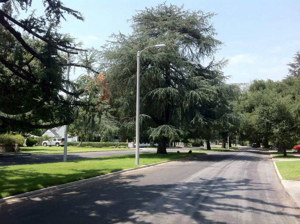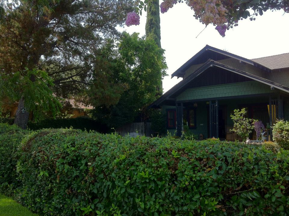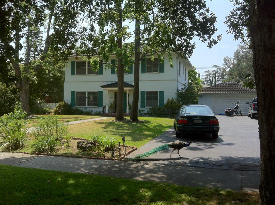 Extending north from the park are Woodward Boulevard and Michigan Boulevard, two streets with wide medians that are home to large evergreens that look older than most of the homes alongside them. When I the park live avenues, both were being pecked and shat upon by several peafowl, probably visiting from Arcadia’s Los Angeles County Arboretum & Botanic Garden.