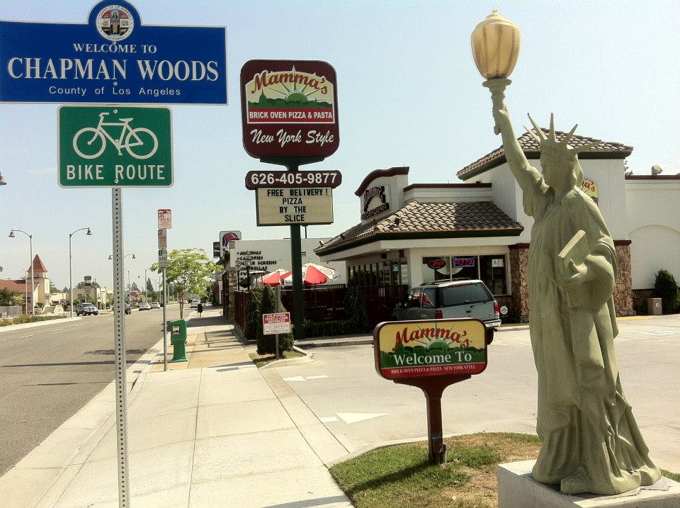 President Thai wins points from me for almost looking like a wat as does Mama’s Brick Oven Pizza & Pasta for having a replica of the 93 meter tall Statue of Liberty in New York (or El Monte’s seven meter version).
