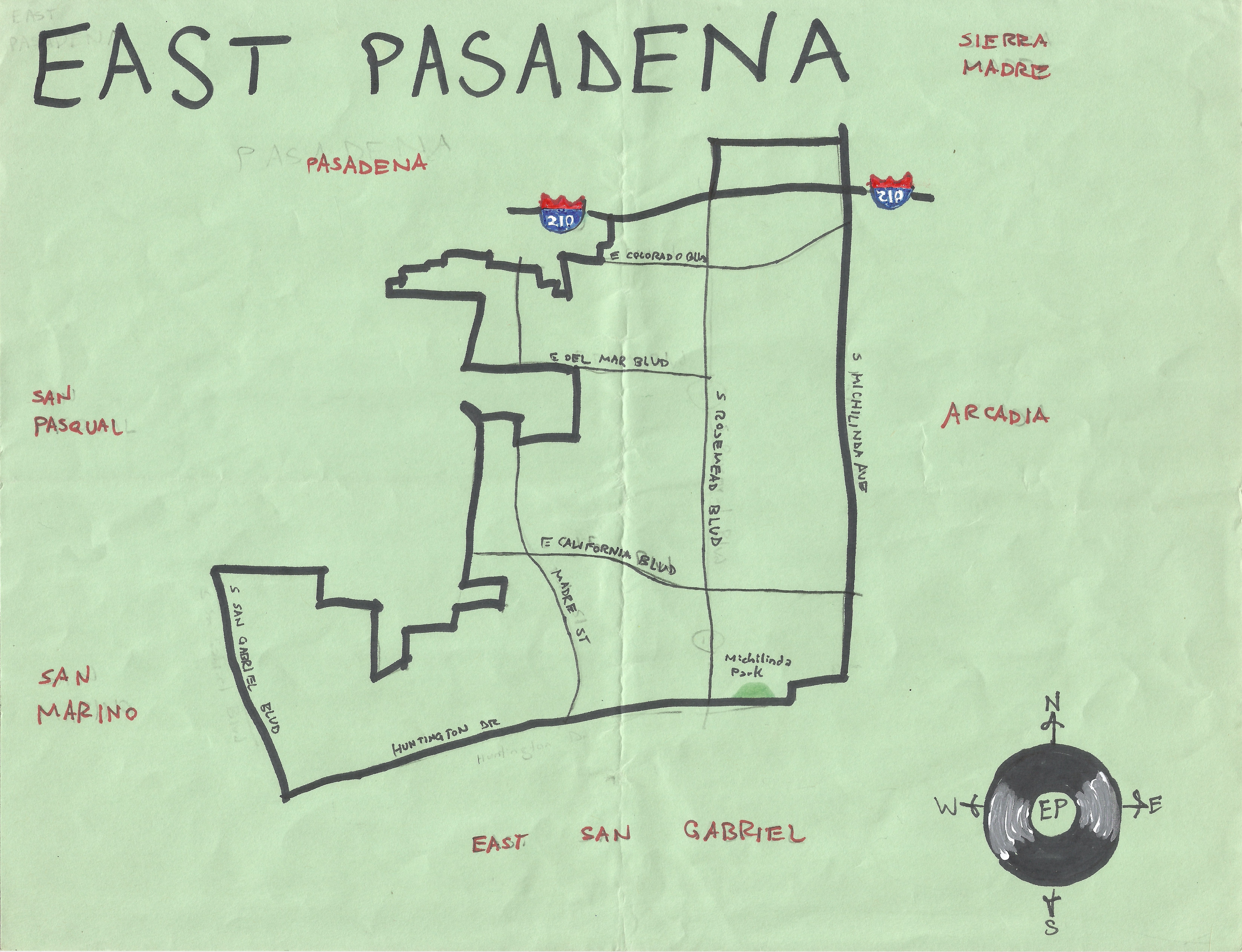 Pendersleigh & Sons Cartography‘s official map of East Pasadena, available in reproductions on fine art prints and a wide range of merchandise
