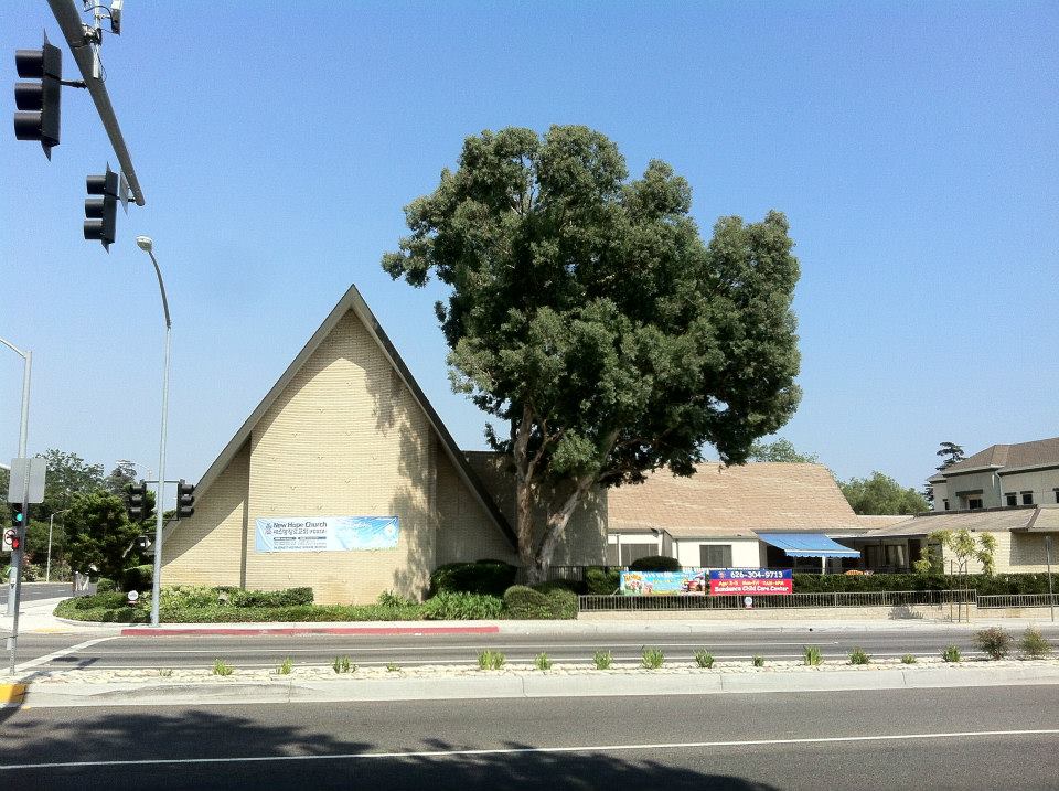 New Hope Presbyterian Church, built in 1963, is a fairly typical church of the era. It used to be Michillinda Presbyterian Church, whose story was told in David Rohrer’s book, The Sacred Wilderness of Pastoral Ministry. Most of its signage now is in Korean. The windowless Jehovah’s Witness Kingdom Hall looks like a military barracks.
