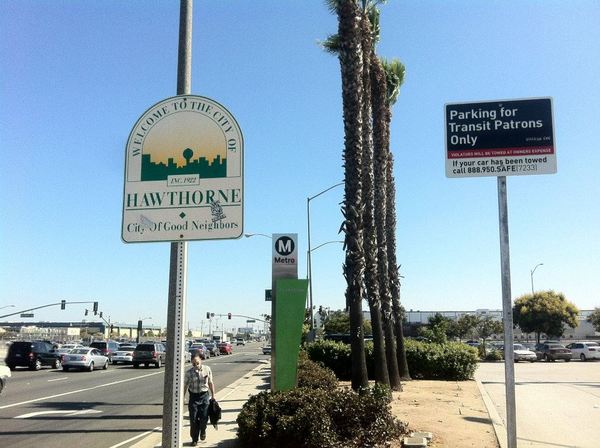 Crenshaw Station is located in the city of Hawthorne, just south of the city of Inglewood. Both communities are historically associated with the South Bay despite being located rather far from the Santa Monica Bay, and since its completion, further separated from the Beach Cities by the 405 Freeway. Nonetheless, the air here is noticeably cooler and sea gulls and descending jets both occupy the sky above. The adjacent area of Inglewood and its stretch of Crenshaw Boulevard is mostly residential, although Crenshaw Imperial Shopping Center is located just north.