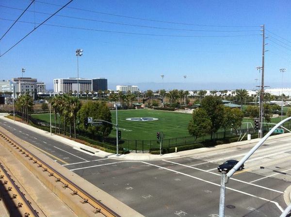 Redondo Beach Station is located in the city of Redondo Beach, on the border with Hawthorne and the city of Lawndale. Though one of the South Bay’s so-called “Beach Cities,” the station is located in landlocked North Redondo Beach near yet more Northrop Grumman properties. The air eerily crackles with electricity from Southern California Edison‘s large El Nido Substation, also located near the station. Beneath the buzzing transmission lines are the popular Aviation Park (including a large gymnasium) and the Redondo Beach Performing Arts Center.