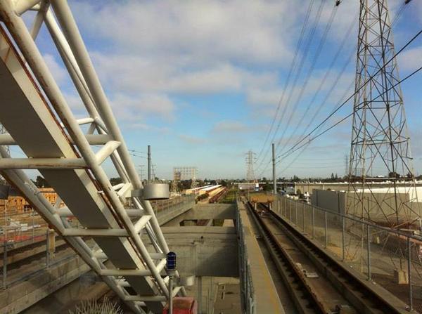 Aviation/LAX is located, as the name suggests, at LAX — albeit at a corner of the property located about three miles from the nearest passenger terminal. When the Crenshaw line and people mover begin operations in 2019, another station will provide access to the airport and this station will thus be renamed. For the time being, there is a free shuttle connecting the terminals to the station (although the Green Line doesn’t run between 12:55 am and 3:35 am should your plane arrive then). Although not the closest Green Line station to the beach, LADOT‘s Commuter Express 438 also connects passengers from here to the coast in about fifteen minutes.
