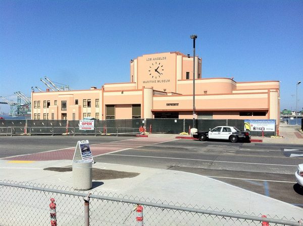 South of the station is the Streamline Moderne LA Maritime Museum, which opened in 1980. The building was formerly the San Pedro Municipal Ferry Building, which provided transportation across the channel to Terminal Island from 1941 (replacing the older Team Ferry) until 1963 when the Vincent Thomas Bridge opened. It’s an excellent introduction to the history of the area that also houses a ham radio station, numerous ship models, and a World War II tugboat out back.