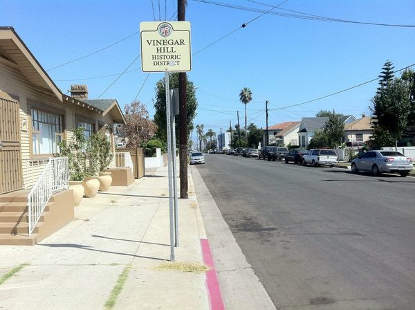 Today the area is also known for the San Pedro Arts District. A little south of that is another small neighborhood, Vinegar Hill. It supposedly acquired its name on account of the sour smell that came from the local home winemaking operations; a stretch of Ninth Street was even nicknamed Saloon-Keepers Row. The HPOZ and the area around it are home to a nice collection of American Colonial, American Foursquare, California Craftsman, Queen Anne, and Spanish Colonial Revival residences, mostly constructed between 1886 and 1927.
