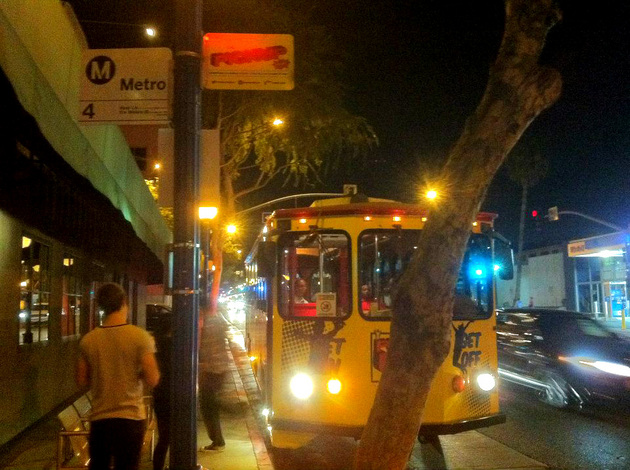 The PickUp’s route is centered along Santa Monica Boulevard with two trolleys traveling in a four mile loop, hitting each of the route’s twenty stops every fifteen minutes.