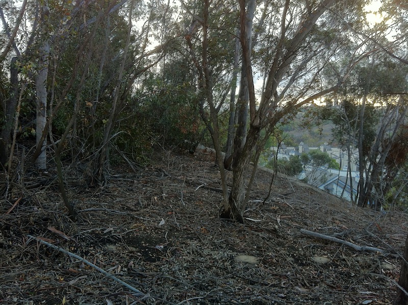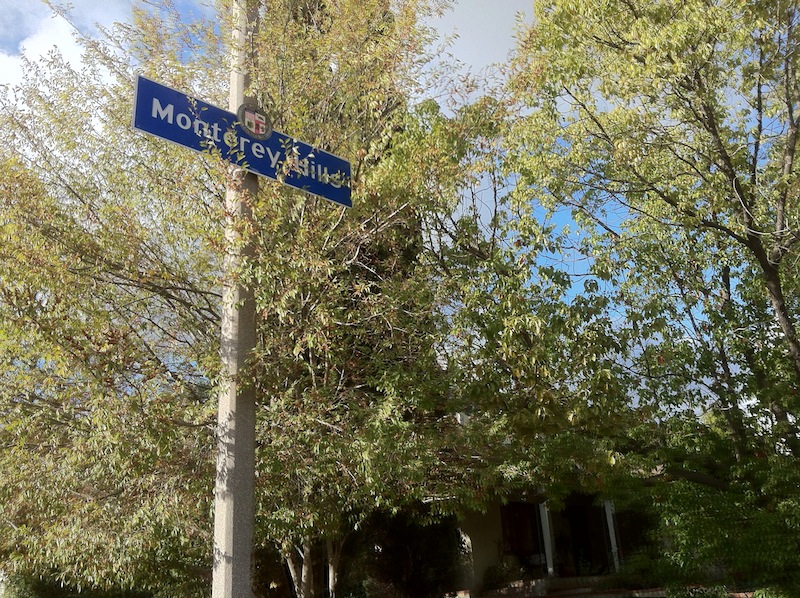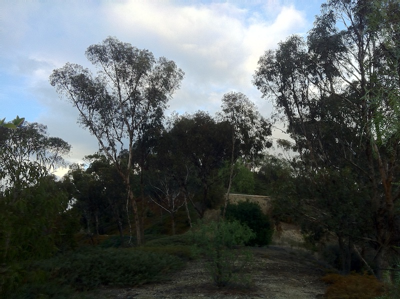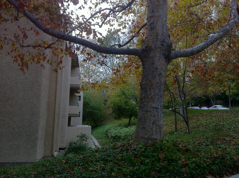 There’s little if any native vegetation in Monterey Hills. Most of it was grazed out of existence during the Spanish era and today most of the landscape architecture is pretty inconspicuous. The hilltops are covered with groves of eucalyptus that have a certain allure and the leaves of some of the trees were changing color — which is apparently one of the only ways that some people raised in temperate climates can recognize the arrival of autumn.