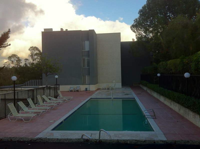 The “alternate commercial” area was the proposed site of a 7-Eleven but residents successfully fought against that and it became the neighborhood’s only park. One of the “Alternate Institutional” areas was developed with homes. The other is home of the Los Angeles International Charter High School — formerly the site of Pacific Christian High School — a site more often associated with the Hermon neighborhood than “The Hill” (as Monterey Hills is nicknamed). There are shared private spaces in the form of designated seating areas, swimming pools, and tennis courts — all of which were invariably empty — as were the guest parking lots.