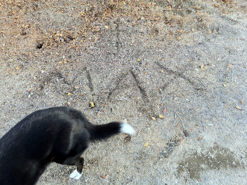 Some of the concrete ditches are heavily tagged. If I’m correct that the goal of tagging is to place one’s handiwork in highly visible yet inaccessible places then spraying one’s tag on the bottom of easily accessed and little-seen ditches must be the equivalent of mere scent marking.