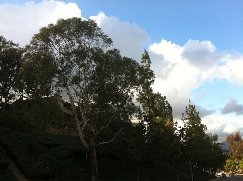 Via Marisol is lined with magnolia trees. Sometimes a seed pod would fall from one, shattering the silence and startling both Dooley and me. The crisp air smelled wonderful, carrying as it did, the mixed scent of eucalyptus and walnuts. All around us we could hear the cawing of crows, the cooing of morning doves, and the calls of various other birds — in stark contrast to the neighborhoods beneath it, which are generally dominated by a Cain-raising canine cacophony.
