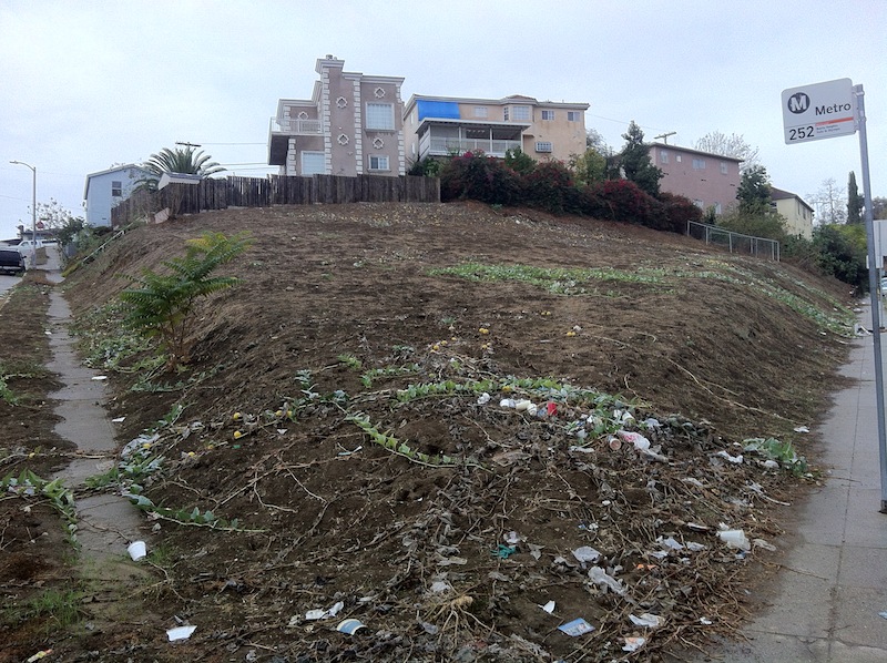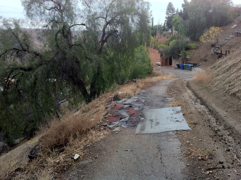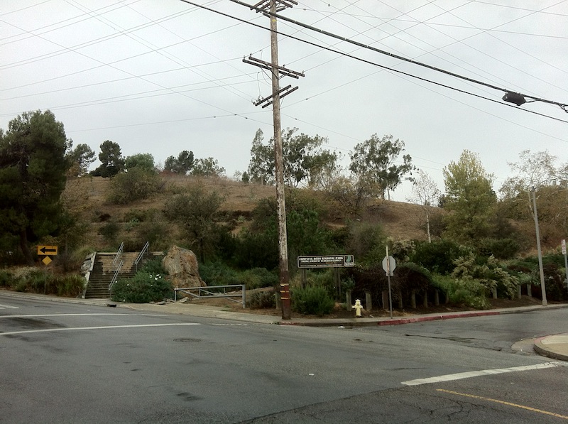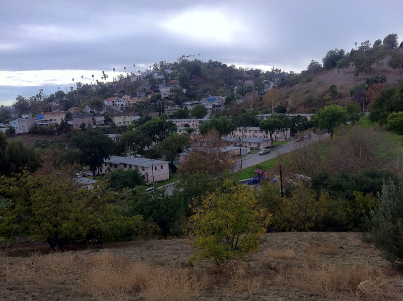 Back in 2012 I had an opportunity to house-and-pet-sit for friends in El Sereno. Pulled along by the homeowners’ dog, Dooley, I explored much of that neighborhood – the easternmost in the city – on a series of long, daily strolls. In the fall of 2013 I returned once more to the Eastside and again we resumed our explorations, only this time we branched out, exploring the communities of Arroyo View Estates, East Los Angeles, City Terrace, Garvanza, Happy Valley, Highland Park, Hillside Village, Lincoln Heights, Monterey Hills, University Hills, and on one drizzly, late autumn morning, Rose Hill.