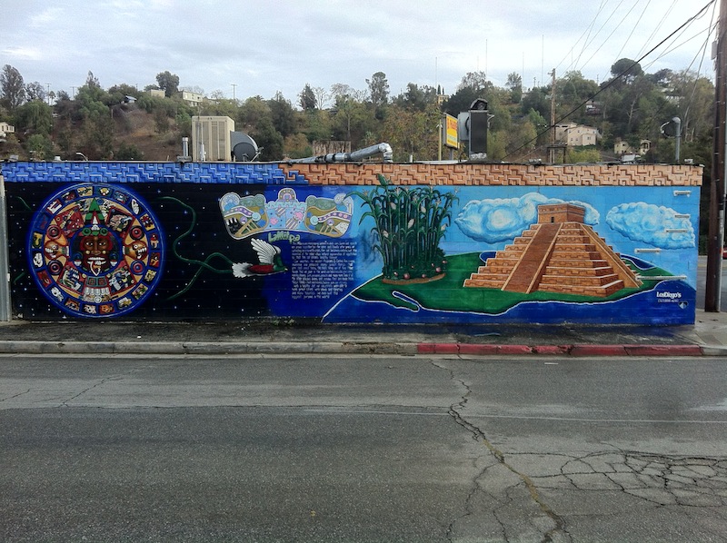 The mural on the back of the restaurant is far more unique. Attributed to “Los Diego’s,” La Milpa is a cosmic Mesoamerican educational mural that covers the entire wall.