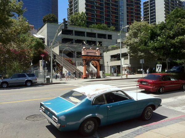 In the vicinity of the First Street/Central Avenue Station, there are many attractions, including East West Players, Aratani/Japan America Theatre, several churches and temples, Honda Plaza, the Japanese American National Museum (home to both the National Center for the Preservation of Democracy and the Little Tokyo yakuza offices, if Takeshi Kitano‘s film Brother is to be taken as fact), Japanese Village Plaza Mall (with the iconic David Hyun-designed Yagura Fire Tower), The Geffen Contemporary at MOCA, the Go For Broke Monument, Little Tokyo Galleria, Weller Court, and many bakeries, cafés, izakaya, markets, and more. Nearby in the Arts District are Art Share LA, Southern California Institute of Architecture (SCI-Arc), several art galleries, restaurants, and Angel City Brewery.