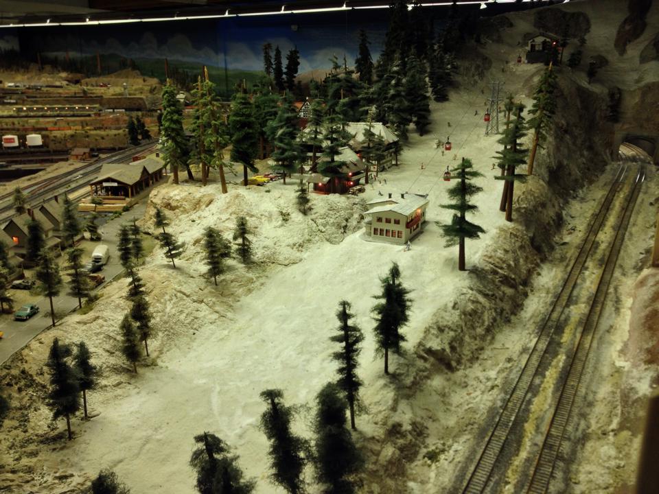 The trains of my imaginary railroad traversed an unimpressive, half-finished landscape of plaster, particle board, and a few model buildings located amongst groves of fake trees and reindeer moss. The layout of a model railroad club is much more impressive than those found in most homes — with the exception of affluent celebrity enthusiasts like Frank Sinatra, Rod Stewart, and Gary Coleman. My trains were HO Scale (1:87), the most popular, and the same scale as Pasadena Model Railroad Club’s Sierra Pacific Line. Before them, larger O scale (1:48 to 1:43.5) model trains had been the most popular. Model railroad trains come in more than fifty scales, from the (1:220) Z Scale up to the ridable live steamers (1:24 – 1:8) and the grand scales (1:4 and up) commonly found in amusement and theme parks.