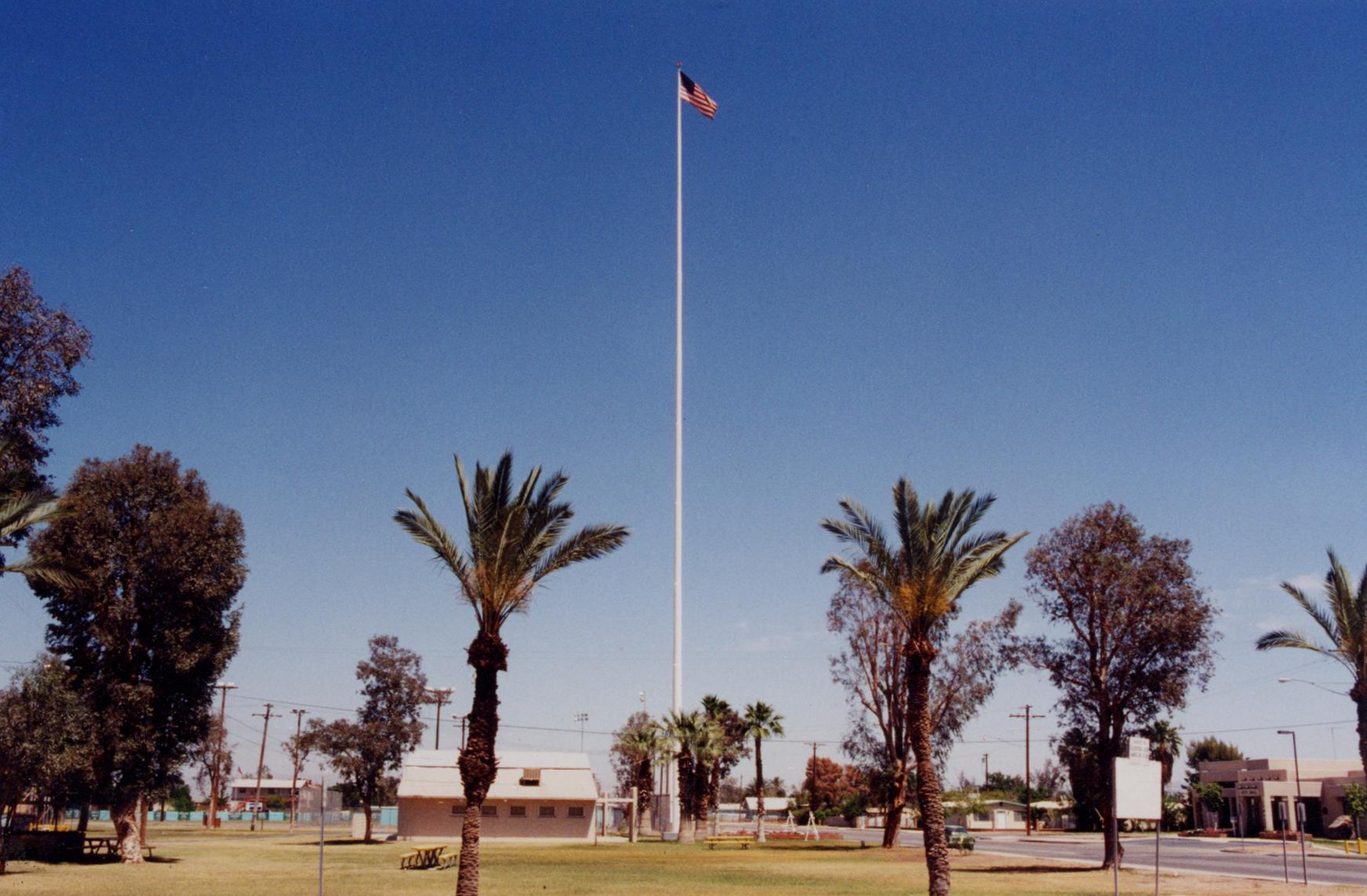 Calipatria is a city which in 2010 reported a population of 7,710, 4,000 of whom are inmates at Calipatria State Prison. The town was founded by the Imperial Valley Farm Lands Association as Date City in 1914 but was renamed Calipatria and incorporated in 1919. Located 55 meters below sea level, Calipatria lies at the lowest elevation of any city in the Americas. It also boasts of having the “World’s Tallest Flagpole” (even though the 56-meter-high Calipatria Flagpole is dwarfed by the 165-meter tall Dushanbe Flagpole in Tajikistan).