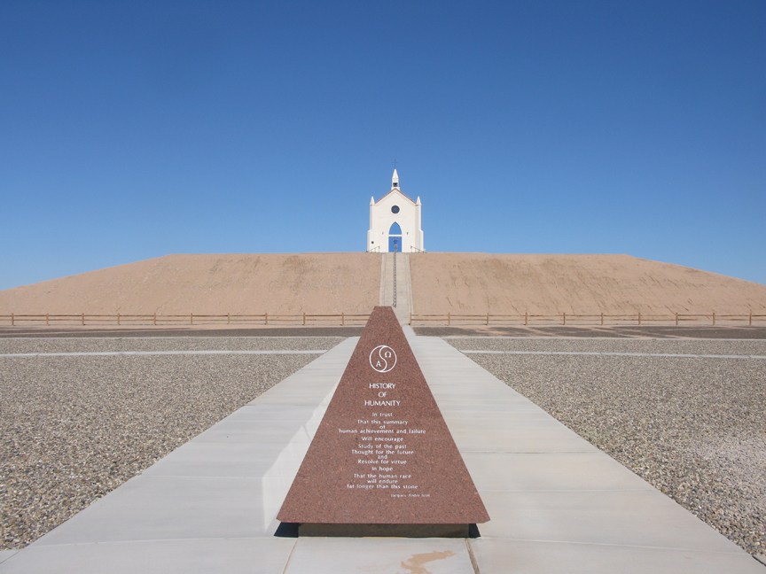 Felicity was founded in 1986 by parachutist Jacques-André Istel and his wife Felicia Lee. In 1985 Istel published the book, Coe: The Good Dragon at the Center of the World and soon after erected a pyramid to mark the exact spot of the world’s center, Felicity, California.