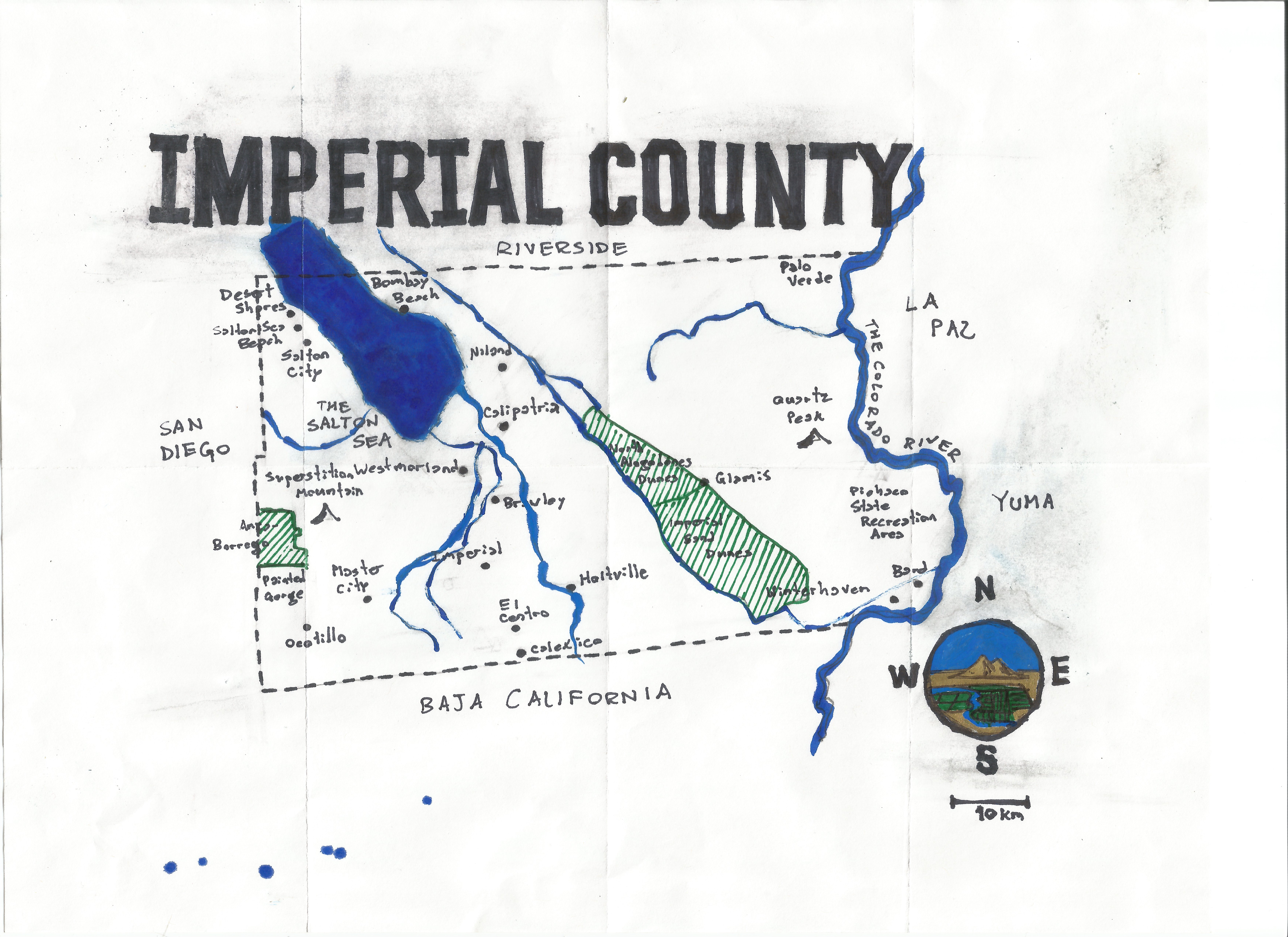 Imperial County, along with San Diego County, comprises California’s Southern Border Region but their similarities pretty much end there. Whereas the presidio at San Diego was established by the Spanish in 1769 and is the oldest European settlement in the state. On the other hand, Imperial County, created in 1907, is California’s newest. Whereas San Diego County is the second most populous county in California, Imperial County is the least. San Diego’s climate is characterized as chaparral, Imperial County is located within the Colorado Desert. But yes, both counties lie just north of the Estado Libre y Soberano de Baja California.