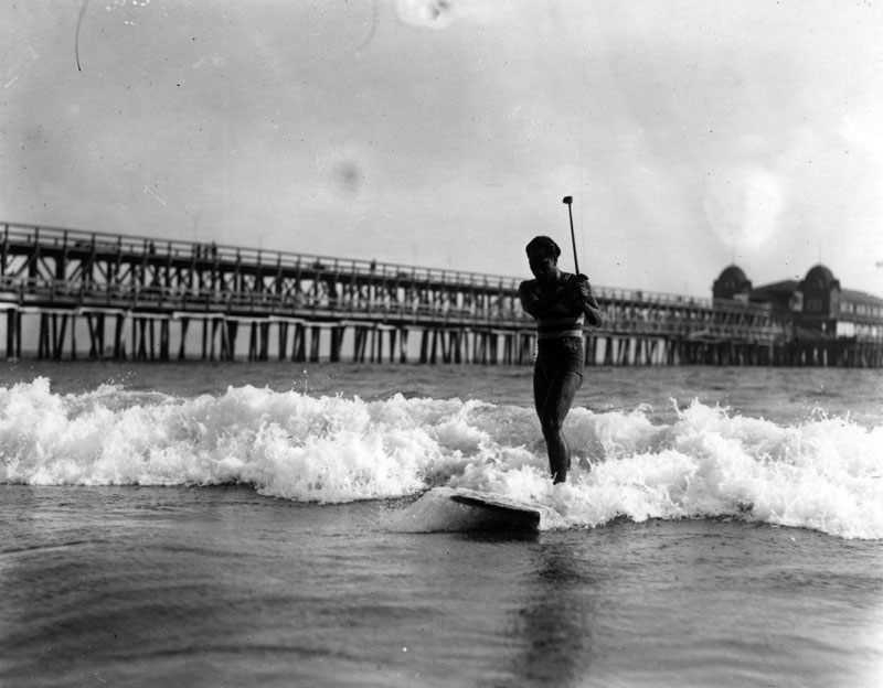 After sugarcane, the most important import from Hawaii was surfing. Although surfing additionally practiced in Samoa and Tonga, it was first brought to the shores of California by a trio of Hawaiians in 1885. In 1907 Hawaiian George Freeth demonstrated surfing for a crowd in Huntington Beach. Surfing quickly took hold in Southern California to the point you’d be forgiven for assuming it was invented there and Huntington Beach now bills itself as “Surf City,” hosts the International Surfing Museum, has a Surfer’s Walk of Fame, and a statue of Duke Paoa Kahinu Makoe Hulikohoa Kahanamoku.