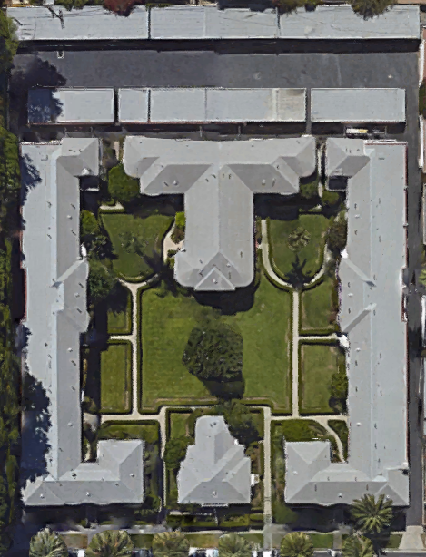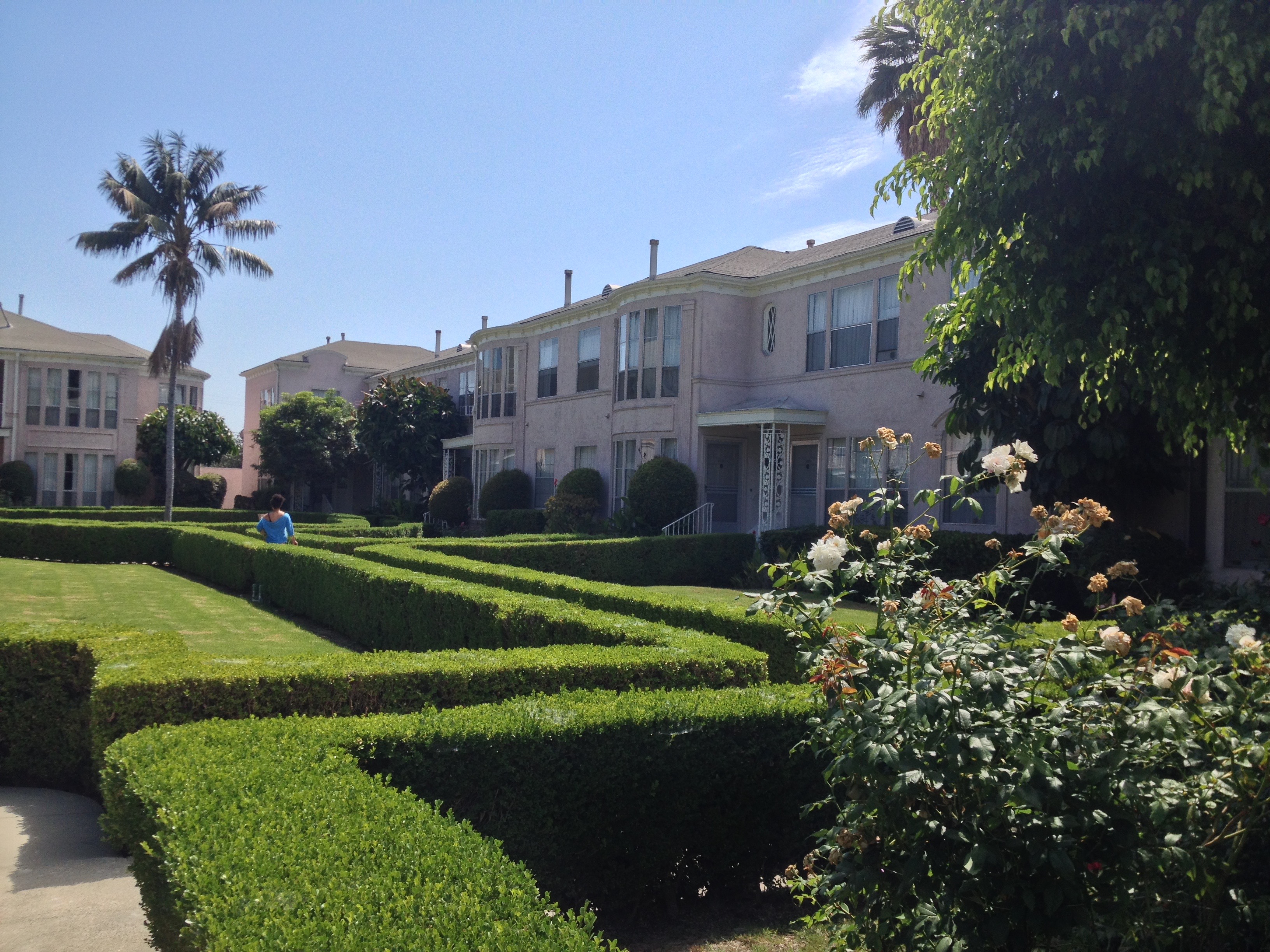 Courtyard apartments represent a step forward from bungalow court apartments, which along with duplexes and fourplexes, dominated multiple family housing in the years before the Great Depression, when only the working class typically lived in them. By the time courtyard apartments appeared, middle class and wealthy urban dwellers increasingly chose to live in multi-family housing and the detached house surrounded by a grass moat was increasingly banished to the bleak, suburban outland. Located as it was within walking distance of the studios of RKO, Columbia, United Artists, 20th Century Fox, and CBS, Clinton Manor was early on likely to have been home to many Angelenos involved in the film industry.