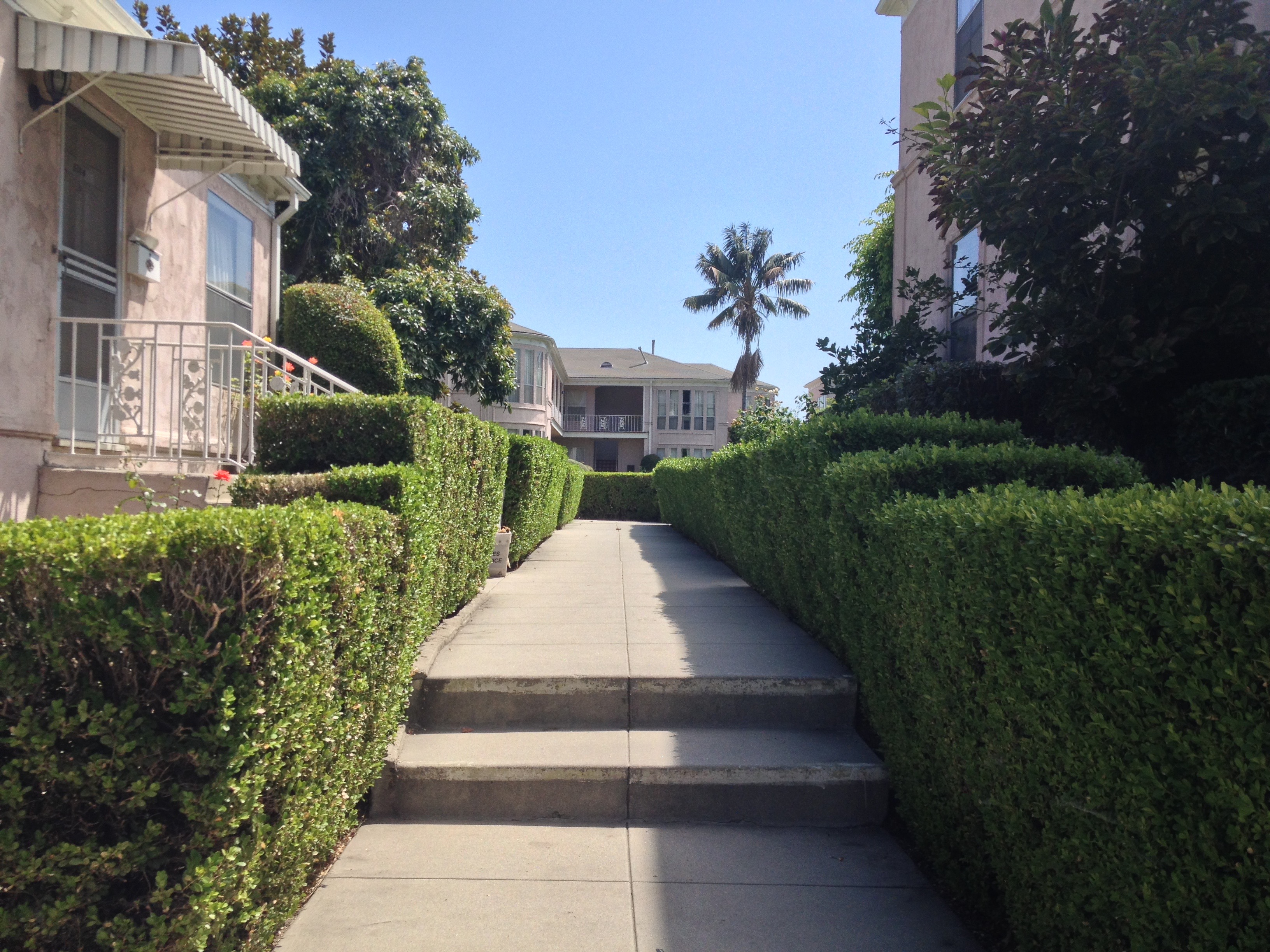 I asked Tim (one of those moving and frequent traveling companion on many episodes of California Fool’s Gold) whether or not he ever sees any of his neighbors broach the hedges to sit on the lawns and he said that he occasionally sees people lug folding chairs over the manicured hedges onto the manicured, grass lawns. I asked whether or not he ever socialized with his neighbors and he said no, and added that he didn’t even know any of their names — but this probably says more about Tim than the intention of the complex’s designers.