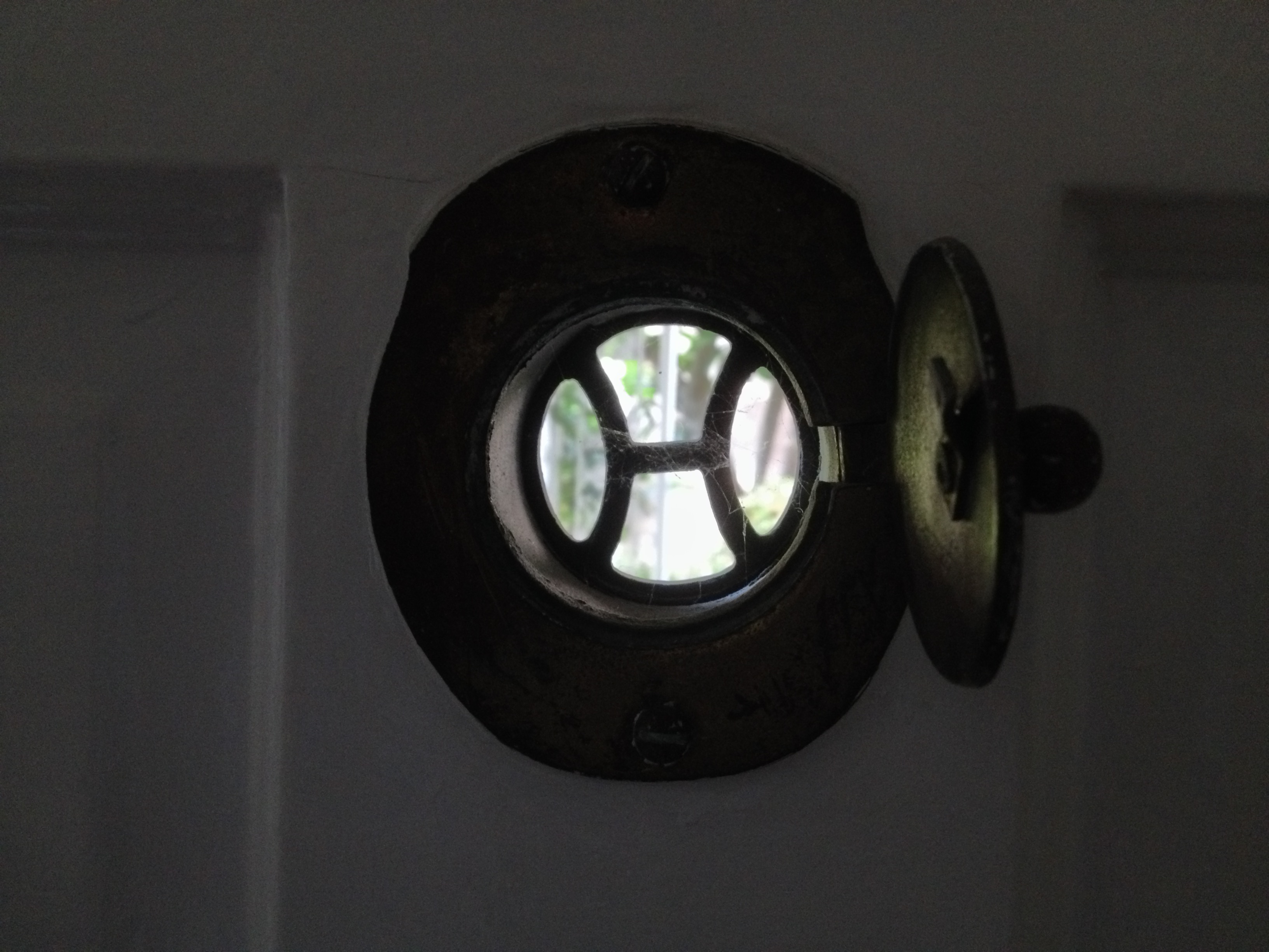 Clinton Manor was constructed in 1940 on land subdivided by I.A. Weid. I’m not sure whether or not it’s its original color but today Clinton Manor is painted a soothing pale pink — the color of soothing products like calamine lotion, pink bismuth, and some brands of adhesive bandages. Both the buildings and courtyard are in the American Colonial Revival style. Their are bay windows and pretty stairway tiles. The units’ themselves are modest — the brass peepholes in the front doors are the most interesting detail, literally connecting the exterior to the interiors.