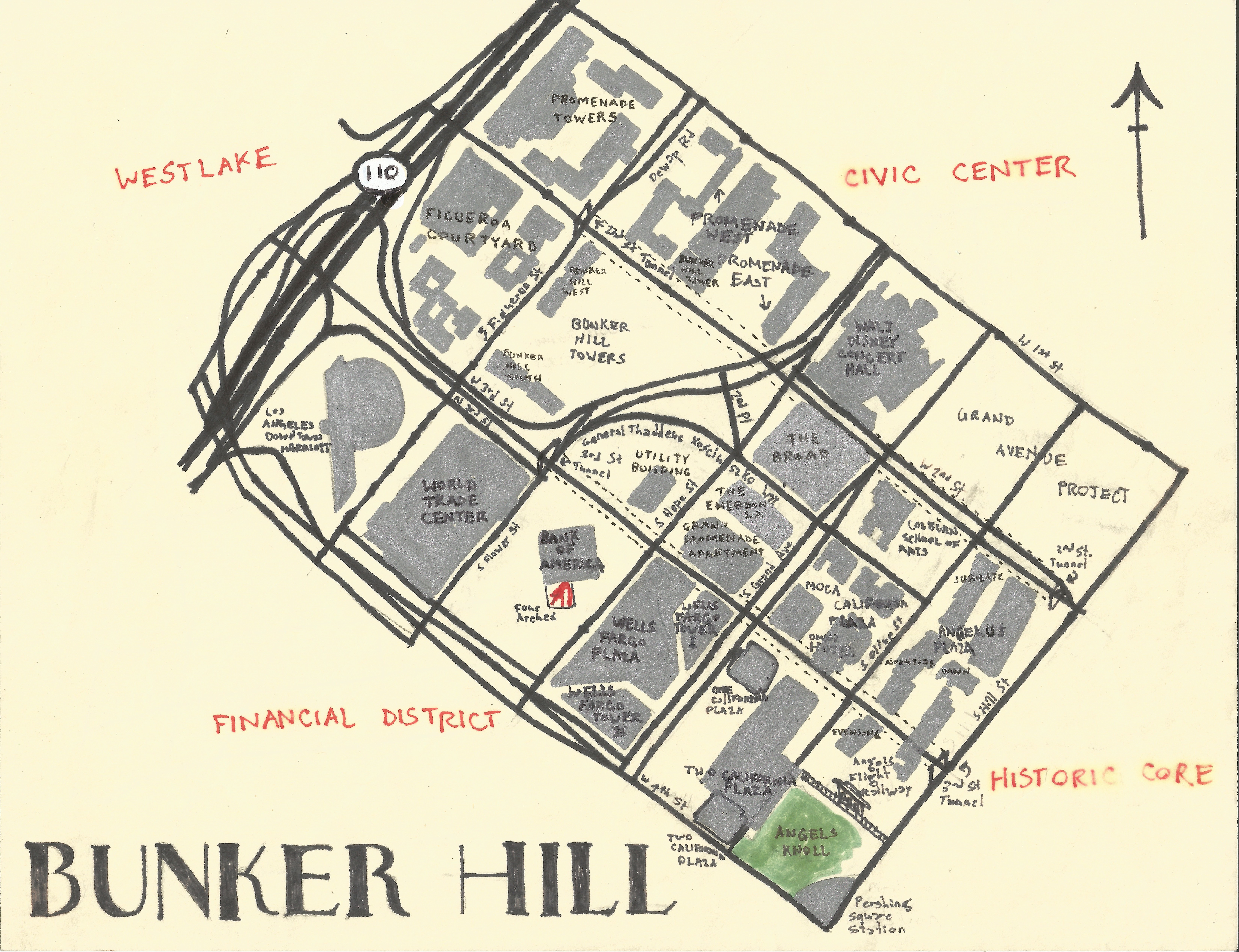 The story of Bunker Hill is the story of at least three neighborhoods — maybe more. There’s the posh, Victorian neighborhood of the late 19th Century. There’s also the diverse, working-class neighborhood celebrated in noir fictions of the early 20th Century. Today, there’s the contemporary neighborhood, a collection of corporate high-rises and high culture. As an explorer of neighborhoods, I’m most interested in the latter.