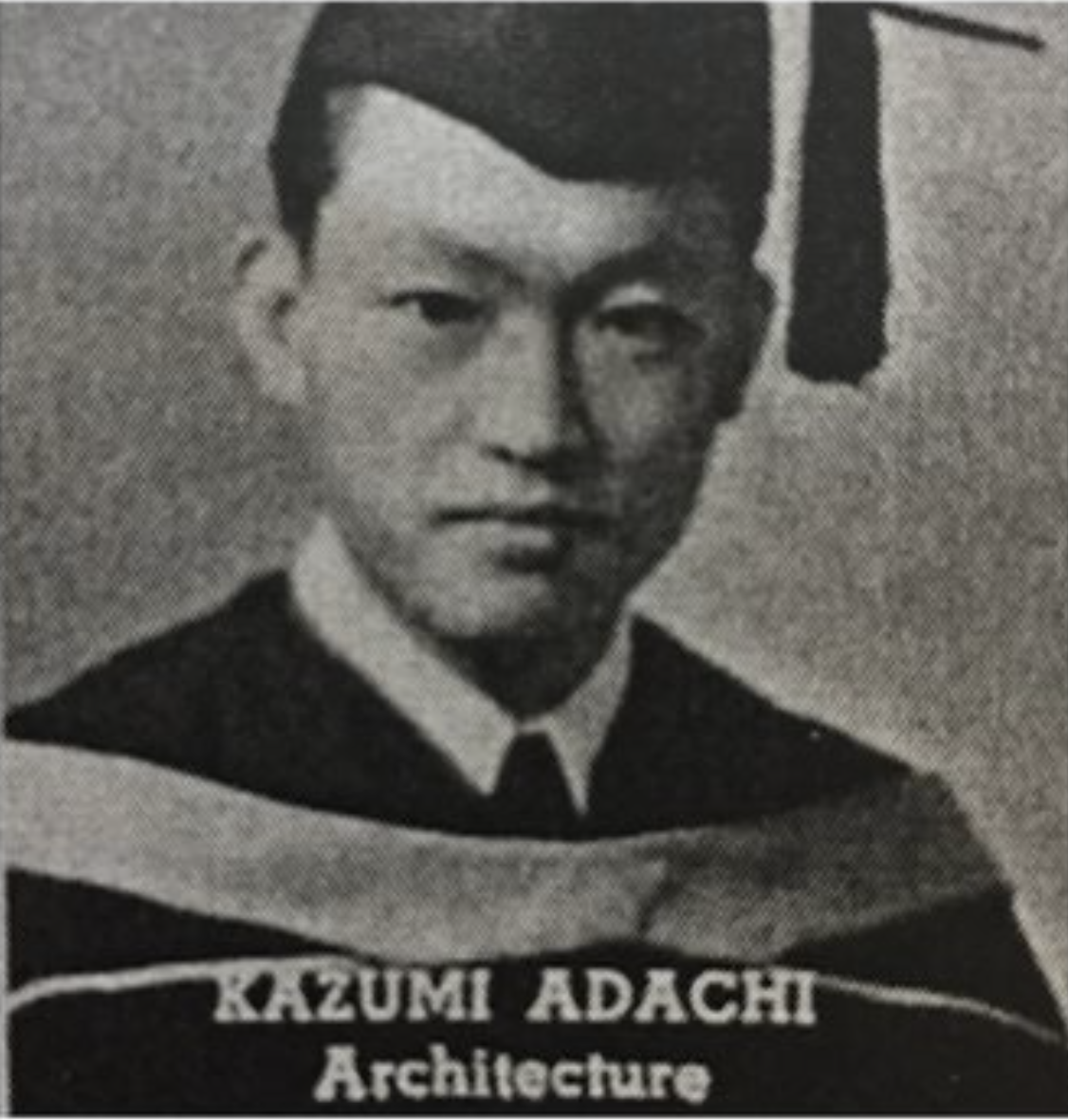 Kazumi Adachi was born in 1913. He graduated from USC in 1939. Kazumi had already designed Modernist homes, such as one in Ojai, by the time he founded Kazumi Adachi & Associates, in San Pedro, in 1953. Adachi designed Kay’s, a garden supply store located at 3318 West Jefferson Boulevard, in 1954. Adachi collaborated with Daisuke Dike Nagano on the Fort Moore Pioneer Memorial in 1957. In 1957, he also designed the New Shonien/Japanese Children’s Home at 1815 Redcliff Avenue. He designed another Modernist residence in 1958 for Mr. & Mrs. Lou Rifkin, in the Hollywoodland neighborhood. He designed the San Fernando Japanese American Community Center at 12953 Branford Street in 1959. Adachi designed his own home, the Kazumi Adachi house, in Beachwood Canyon. In 1969, he designed a stunning home in Granada Hills, overlooking the first hole of the Knollwood Country Club golf course, for a doctor and his family. In 1971, Adachi collaborated with Kiyoshi Sawano, Hideo Matsunaga, Isamu Noguchi, and Takeo Uesugi in the design of the Japanese American Community and Cultural Center. He died in 1992.