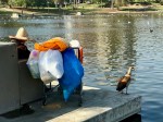 In 1960, the Minnesota Lakers moved to Los Angeles, and locals joked that the lake, therefore, became a reference to the one in MacArthur Park. Minnesota may be the “land of 10,000 lakes” but even humble ponds like the one in MacArthur Park are capable of sustaining a diverse population of animals. Even at its most fifthly and seemingly inhospitable, in fact, MacArthur Park is an oasis of sorts for some of Los Angeles’s non-human denizens supporting 42 varieties of trees (including, I believe, some sort of Araucaria) and quite a few animals as well. I spied, on the day of my visit, huge numbers of plump eastern fox squirrels (Sciurus niger). Though cute, the mammals were introduced to California in the 19th century and have in many places displaced the smaller native western gray squirrel (Sciurus griseus). I also spied a red-eared slider, (Trachemys scripta elegans), another cute non-native which has crowded out the region’s only native terrapin, the Western Pond Turtle (Emys marmorata). Even more multitudinous (and certainly more diverse) than the squirrels are the park’s population of birds. I spied American coots, Canada geese, California gulls, cormorants, mallards, a night heron, rock pigeons, ring-necked ducks, and many other species I couldn’t identify.